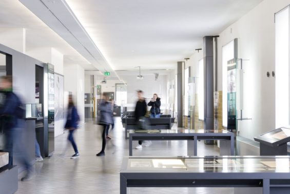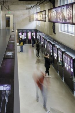 Die Ausstellung befindet sich im Gebäude der ehemaligen Lagerwäscherei. Neben der Wäscherei und der Heizzentrale des Lagers richtete die SS hier im Untergeschoss das »Häftlingsbad« ein. Hier beraubte die SS die Häftlinge nicht nur ihres Besitzes, sondern auch ihrer Würde und machte sie zu Nummern innerhalb der KZ-Bürokratie. Das Raumensemble »Häftlingsbad«, das weitgehend in seinem originalen Zustand erhalten geblieben ist, nimmt daher einen besonderen Stellenwert innerhalb der Ausstellung ein.