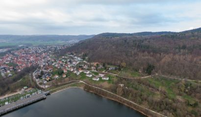 View of the Houbirg Mountain and the reservoir in Happurg, 2019 (Flossenbürg Concentration Camp Memorial / Photo: Rainer Viertlböck)