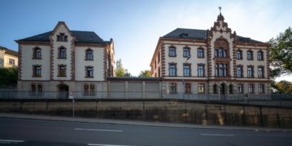 Někdejší vězení v Aue (vlevo), dnes Dům B okresního soudu, 2018 (KZ-Gedenkstätte Flossenbürg / Foto: Rainer Viertlböck)