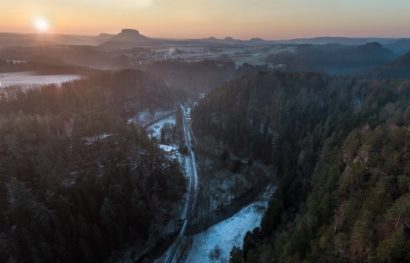 Letecký snímek bývalého areálu tábora v Porschdorfu, 2019 (KZ-Gedenkstätte Flossenbürg / Foto: Rainer Viertlböck). Baráky se nacházely naproti nádraží.