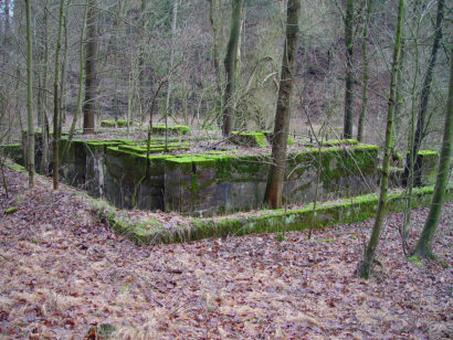 Zbytky základů v Polenztalu, 2007 (KZ-Gedenkstätte Flossenbürg). Na tyto základy měly být postaveny generátory.