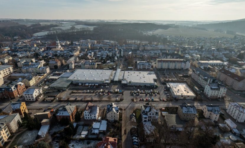Letecký snímek někdejšího průmyslového areálu v Rochlitz, 2019 (KZ-Gedenkstätte Flossenbürg / Foto: Rainer Viertlböck)
