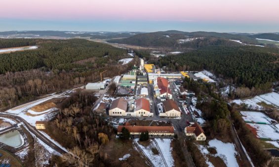 Letecký snímek bývalého průmyslového areálu ve Stullnu, 2019 (KZ-Gedenkstätte Flossenbürg / Foto: Rainer Viertlböck)