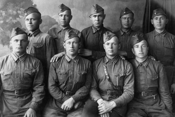 Grygorij Grygorowytsch Mischtschenko (oben links), Ostrog (Ukraine) 1940, Privatbesitz. Im Dezember 1941 überlässt die Wehrmacht den Kriegsgefangenen der Gestapo und bringt ihn ins KZ Flossenbürg, wo er von der SS erschossen wird.