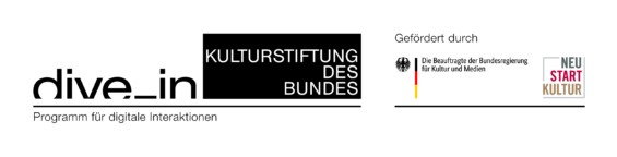 Das Projekt wurde entwickelt und umgesetzt im Rahmen von "dive in. Programm für digitale Interaktion" der Kulturstiftung des Bundes, gefördert durch die Beauftragte der Bundesregierung für Kultur und Medien im Programm "Neustart Kultur" sowie dem Bayerischen Staatsministerium für Unterricht und Kultus.