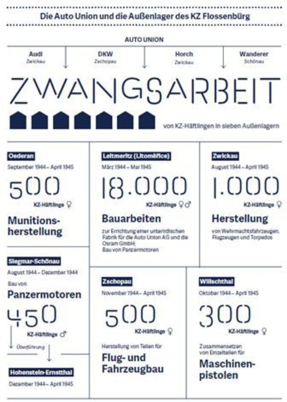 In sieben Außenlagern des KZ Flossenbürg beutete die Auto Union AG, die Vorgängerin der AUDI AG, tausende männliche und weibliche Gefangene aus ganz Europa für die Rüstungsproduktion aus.