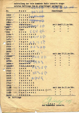 Aufstellung der Häftlinge des Kommandos „Radio Lobositz“, 1944 (Nationalarchiv Prag)