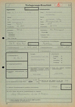 Verlagerungskennblatt der Firma C. Lorenz, 1944 (Bundesarchiv Berlin). Mit diesem Formblatt beantragt die Firma die Verlagerung der rüstungswichtigen Vorfabrikation für Bordgeräte nach Mittweida.