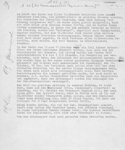 Bericht Bonhoeffers über die ersten Massendeportationen von Juden, 18. Oktober 1941 (Staatsbibliothek zu Berlin)