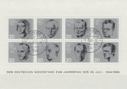Briefmarkenblock der Deutsche Bundespost anlässlich des Jahrestages zum 20. Juli, 1964 (KZ-Gedenkstätte Flossenbürg)