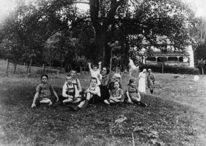 Familie Bonhoeffer vor ihrem Ferienhaus im schlesischen Wölfelsgrund Juli 1911 (Staatsbibliothek zu Berlin)