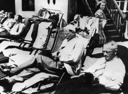 Dietrich Bonhoeffer an Deck auf der Überfahrt nach New York, 1939 (Staatsbibliothek zu Berlin)