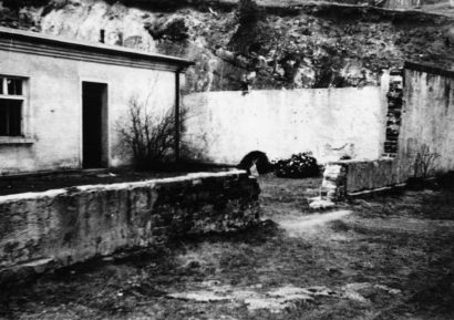 Überreste der Hinrichtungsstätte im Hof des Arrestgebäudes im KZ Flossenbürg, um 1964 (Staatsbibliothek zu Berlin)