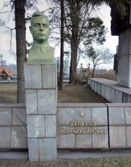 Bronzebüste von Iwan Mychajlowytsch Schepetow beim Hüttenwerk in Dniprodserschynsk, 1983 (Privatbesitz)