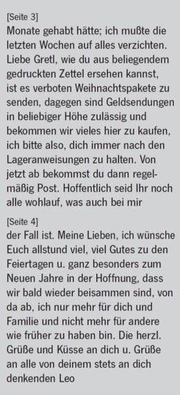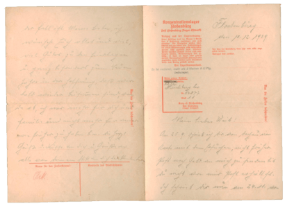 Brief von Leo Hirschberg aus dem Konzentrationslager Flossenbürg an seine Frau Gretl, 10.12.1939 (Privatbesitz)