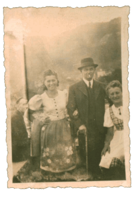Leo Hirschberg mit Tochter Luzie und Nichte Emmi auf einem Ausflug bei Aussig, 1942 (Privatbesitz)