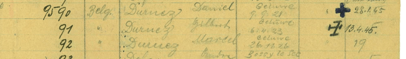 Registrierung der Brüder Durnez in den Nummernbüchern des KZ Flossenbürg, 1944 (National Archives, Washington D.C.)