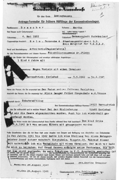Martha Dreschers Antrag auf „Sonderhilfe“, 1946 (Privatbesitz)