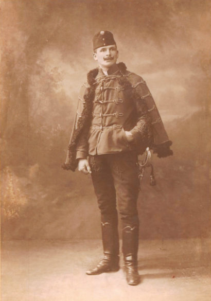 Pál Csiba in der Uniform eines Husaren der ungarischen Kavallerie Pozsony (slowakisch: Bratislava), um 1914 (Privatbesitz)