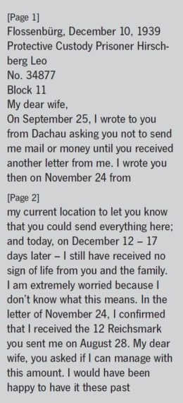 Letter from Leo Hirschberg from the Flossenbürg concentration camp to his wife Gretl, December 10, 1939 (private collection)