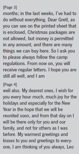 Leo Hirschberg was permitted to receive mail and send letters twice a month. The letters were censored.