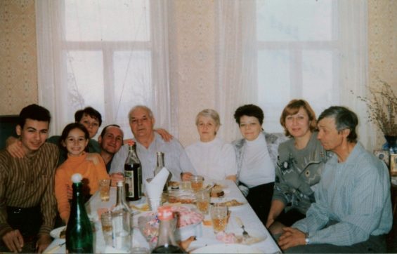 Leonid Gavriilovich Dryamov (center) on his 77th birthday with his family, Volgograd 2001 (private collection)