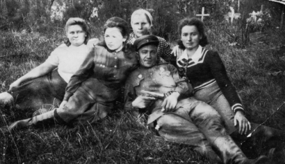 Lyubov Yakovlevna Karpovich (right) with coworkers and friends, Hungary 1945 (private collection)