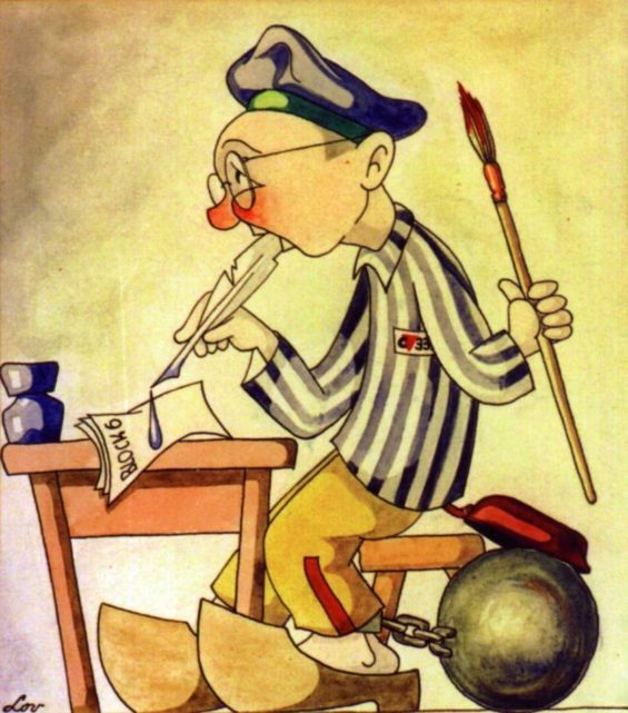 Miloš Volf worked as a scribe in block six. He portrays himself in the caricature.