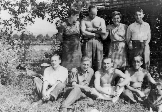 Tadeusz Sobolewicz (in front, second from left) with other liberated prisoners in Laufen, May/June 1945 (private collection)