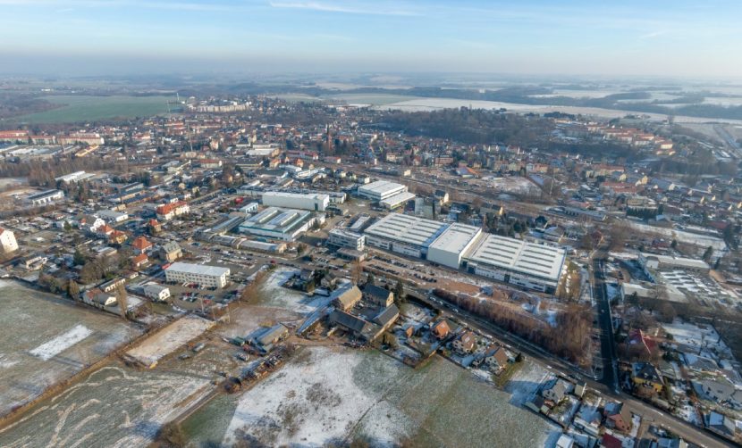 Aerial photo of the former factory grounds in Hainichen, 2019 (Flossenbürg Concentration Camp Memorial / Photo: Rainer Viertlböck).