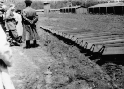 Laying out of the dead in the former prisoner camp, June 8, 1945 (City Administration Nová Role)