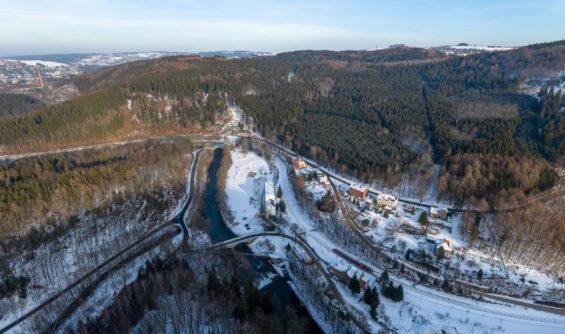 Aerial view of the former factory grounds in Wilischthal, 2019 (Flossenbürg Concentration Camp Memorial / Photo: Rainer Viertlböck)