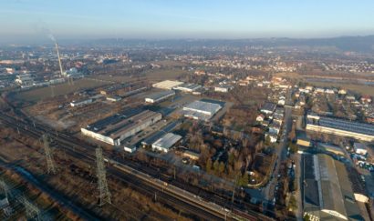 Aerial view of the former MIAG-grounds in Zschachwitz, 2019 (Flossenbürg Concentration Camp Memorial / Photo: Rainer Viertlböck). The former camp grounds can be seen in the foreground on the right.
