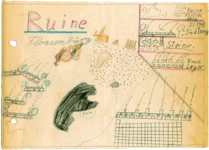 Hans, huit ans, fuit avec sa mère les frappes aériennes sur Berlin pour rejoindre des proches à Floß. Lors d’une promenade au cimetière de Flossenbürg, il voit également le camp de concentration. Dans une lettre à son père, Hans dessine ce que beaucoup refuseront de croire par la suite : le camp et le lotissement des SS font partie du paysage local au même titre que les ruines du château et les pierres de granit.