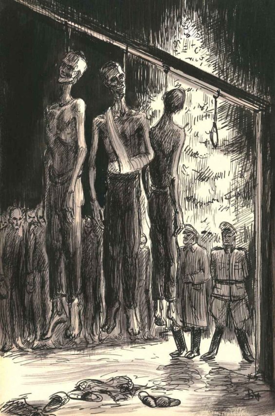 Peu de déportés y survivront. Après le travail, les prisonniers doivent ramener les morts au camp.