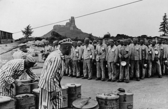 Appel pour le repas dans la carrière, photographie prise par la SS, 1942