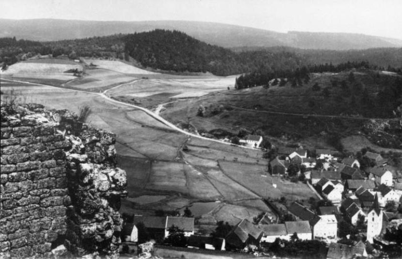 Vue sur le terrain du futur du camp depuis le château-fort, milieu des années 1930